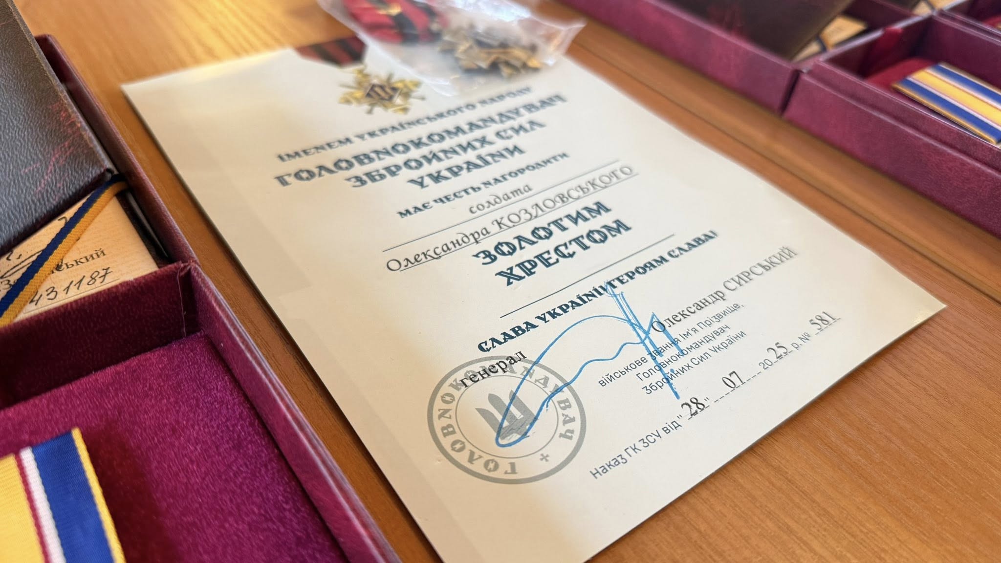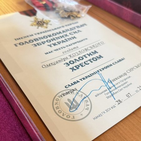 Нагрудним знаком “Золотий хрест” (посмертно):