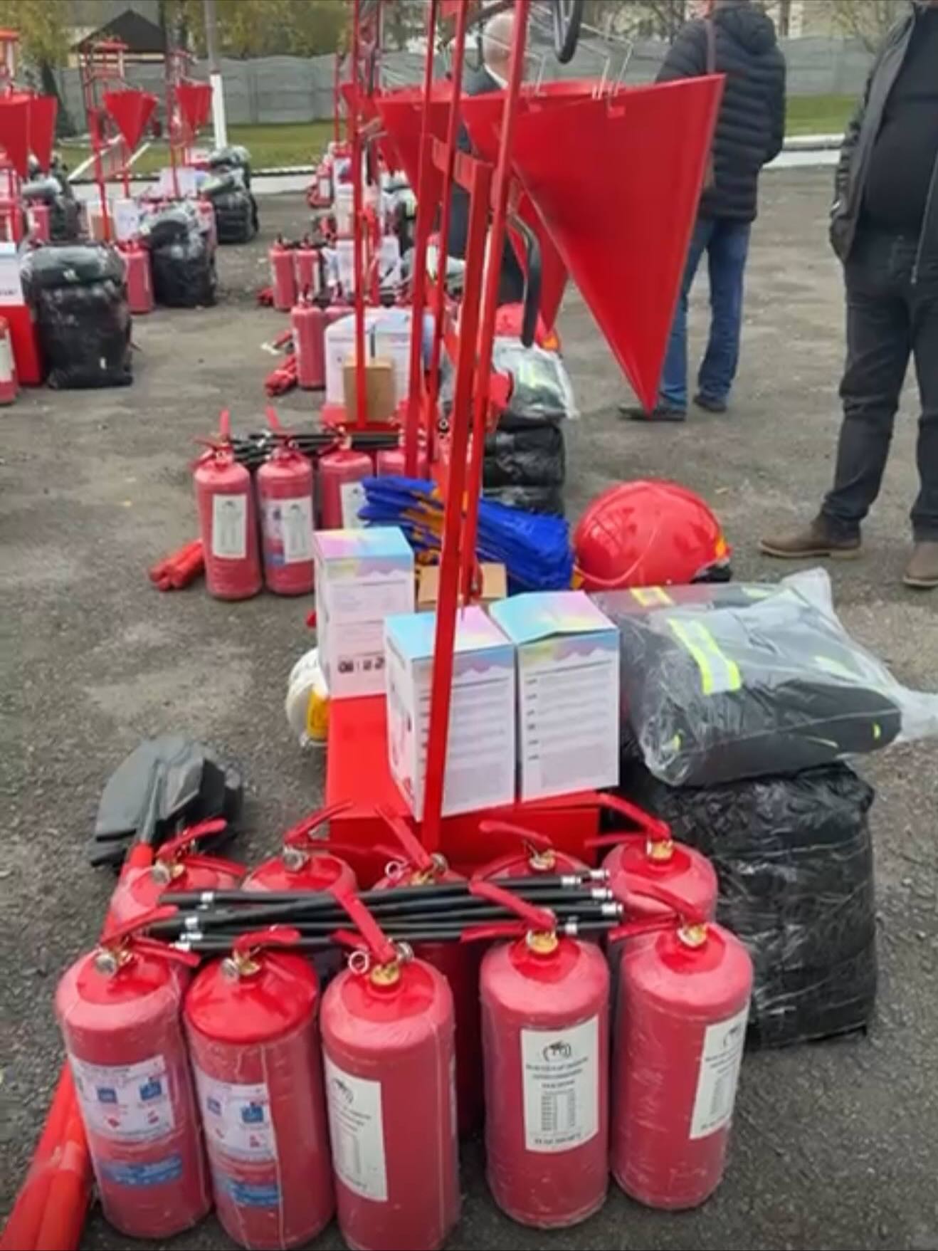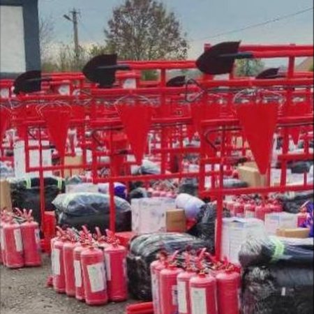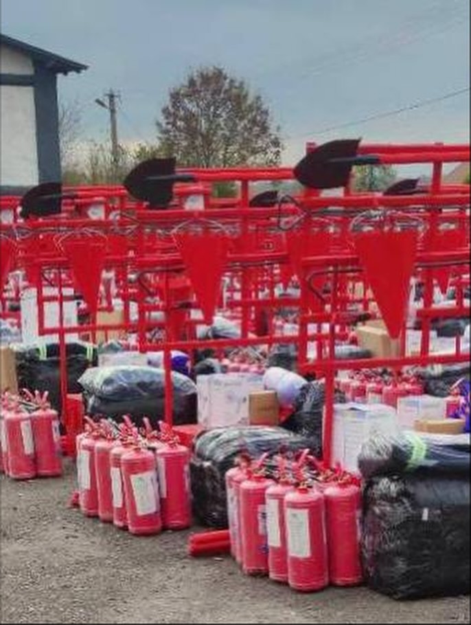 • пожежні лопати, гучномовці, кошми;