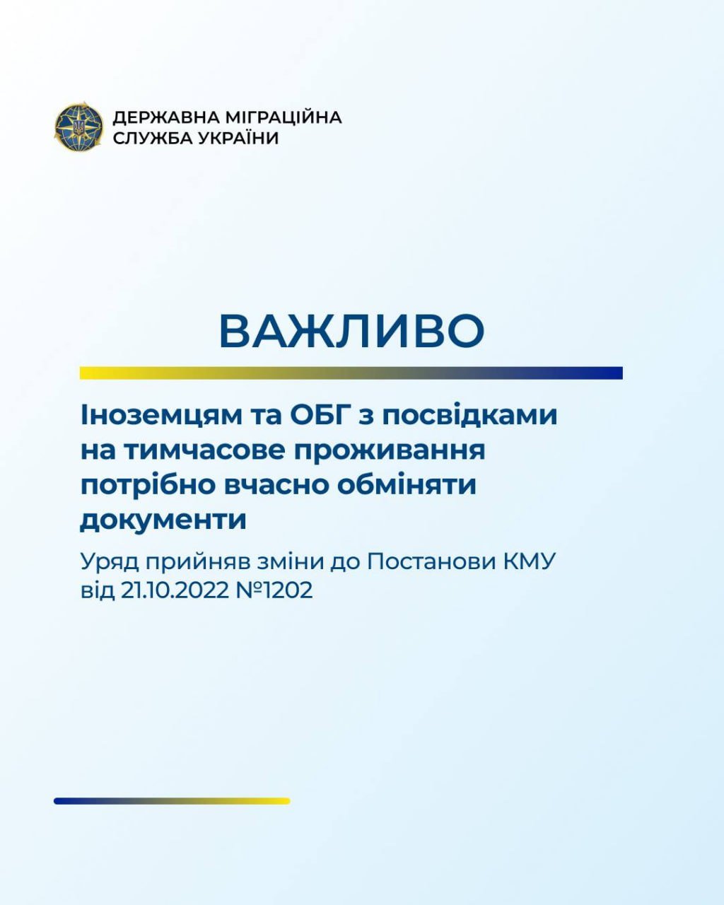 Згідно цих змін іноземці та особи без громадянства, які документовані посвідками на тимчасове проживання, строк обміну яких настав після 24 лютого 2022 року, крім громадян Російської Федерації, зобов’язані в установленому законодавством порядку подати документи для обміну таких посвідок на тимчасове чи постійне проживання протягом 3 місяців з дня набрання чинності постановою.
